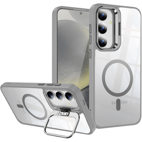 VONZEE Compatible for Samsung S23 FE 5G Case, Compatible with MagSafe, Military-Grade Protective Case, Built-in Stash Stand Phone Case, Scratch-Resistant Back Cover, Classic Series|Clear Grey