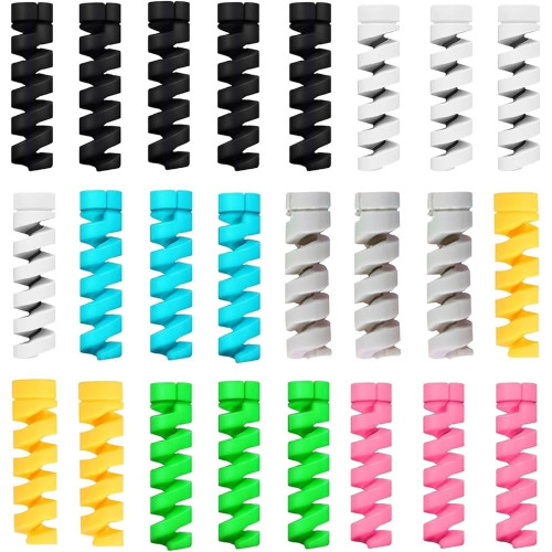 Sounce 25 Pcs Spiral Cable Protectors & Wire Protectors Spring Wire for All Wired Accessories for USB Charger, Data Cable, Headphones, MacBook, Laptop, Elastic Cord Saver (Multi-Color)